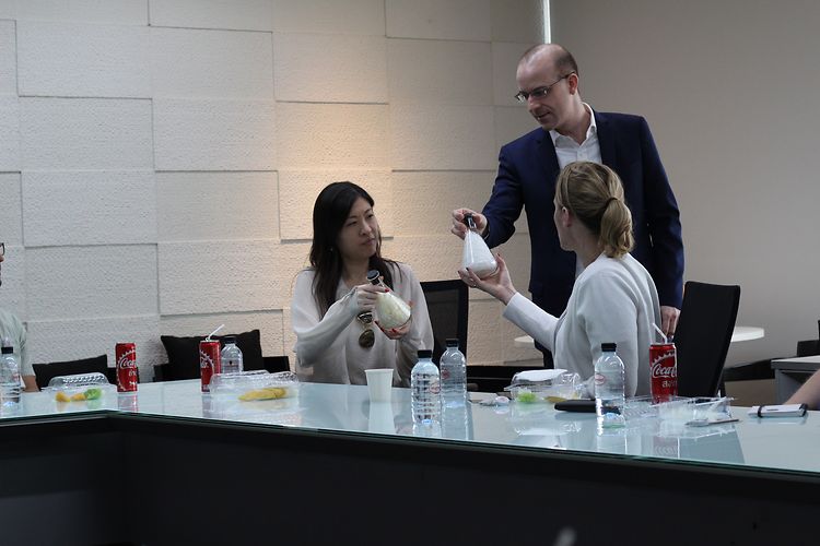 การเยี่ยมชมเริ่มต้นด้วยการแนะนำธุรกิจและการดำเนินงานของเฮงเค็ล โดยนายอีริค อีเดลแมน ประธานของเฮงเค็ล ประเทศไทย เพื่อให้นักศึกษาเข้าใจเกี่ยวกับกลุ่มธุรกิจกาวและผลิตภัณฑ์ของเรามากขึ้น โดยมีการจัดเตรียมตัวอย่างวัสดุให้นักศึกษาได้สัมผัสและส่งต่อกัน